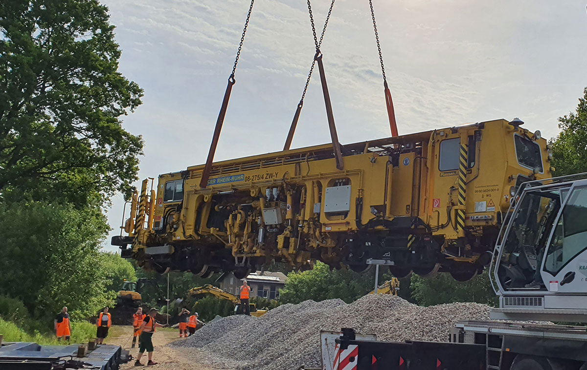 Mit unserer DB AG-zugelassenen Zweiwegestopfmaschine Typ Plassermatic 08-275/4 ZW-Y führen wir Stopfleistungen nach dem neuesten Stand der Technik aus.